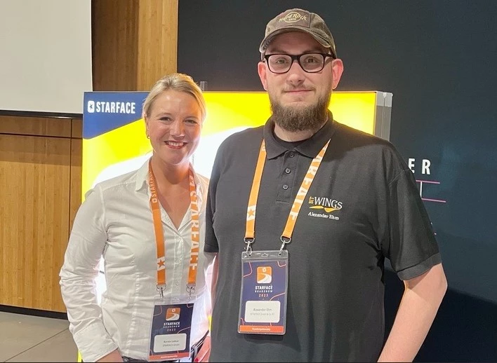 Das erste Galerie-Foto zeigt unseren Teamleiter Alexander Ehm mit Partner Account Managerin Kerstin Lettner von STARFACE.