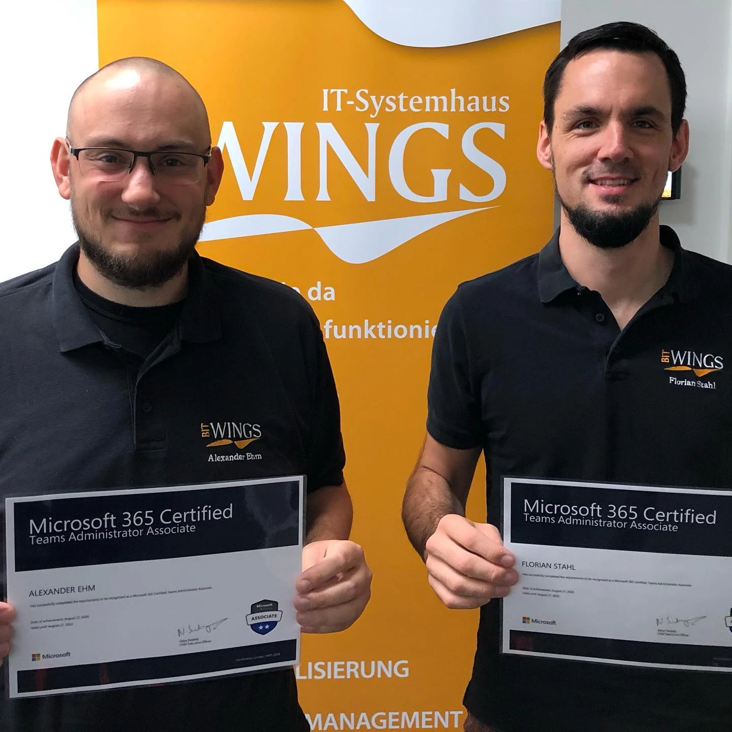 Unsere Systemtechniker Alexander Ehm und Florian Stahl haben die Zertifizierungsprüfung zum "Microsoft Teams Administrator Associate" bestanden.