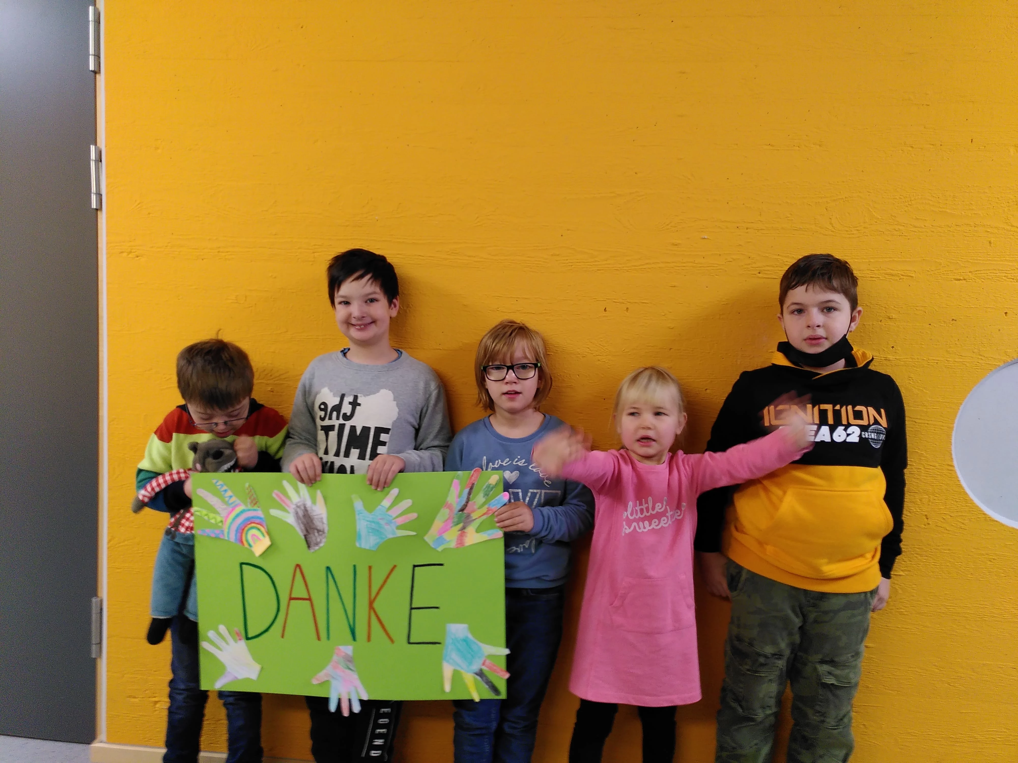 Das Foto zeigt Schüler und Schülerinnen der Grundschulstufe 2 der Lebenshilfe Neumarkt, die sich über die Weihnachtsspende und auf ihre Spiel- und Sportscheune freuen (Foto: Lebenshilfe Neumarkt e.V.)