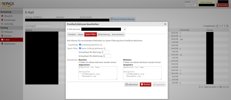 LiveConfig - Anleitung zur Konfiguration des E-Mail Spamfilters
