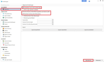 - Navigieren zum Reiter Allgemein und folgende Haken setzen: